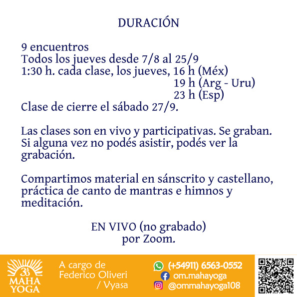 Compartimos material en sánscrito y castellano, prácticas de canto de mantras e himnos y meditación.